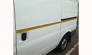 The colour of the tapes must comply with local regulations, which in some cases require yellow to the side and red to the rear. In other cases it requires either yellow or white throughout the whole vehicle.